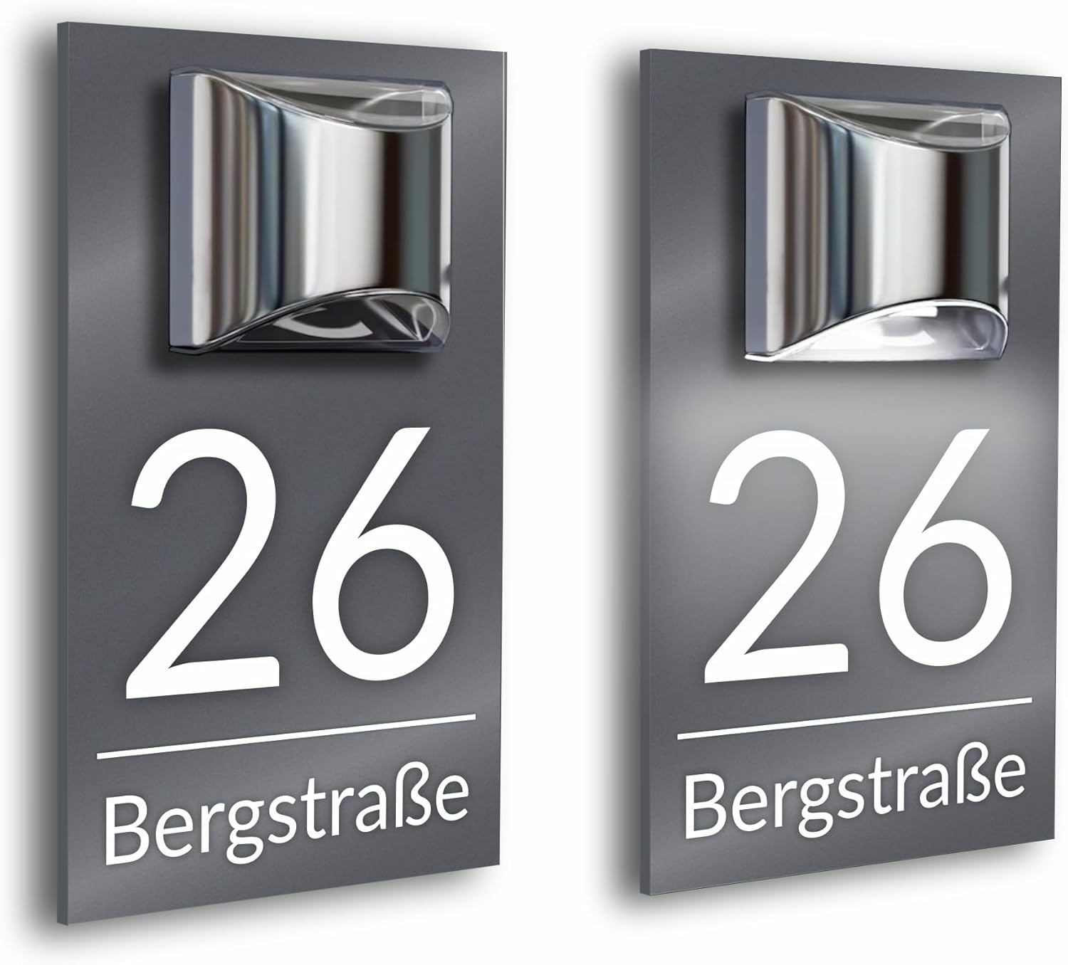 Premium Hausnummer beleuchtet mit LED Solar | individuell anpassbar | Acrylglas Grau Matt | 3D Effekt | Wetterfest H1023 Grau