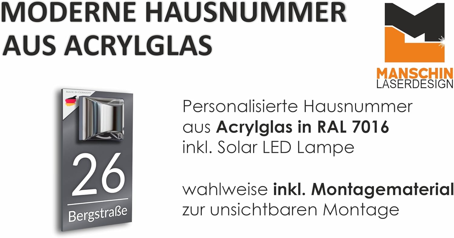 • MADE IN GERMANY: Unsere modernen Hausnummern werden nach Ihrem Wunsch in unserem Familienunternehmen in Bayern mit viel liebe Hergestellt.