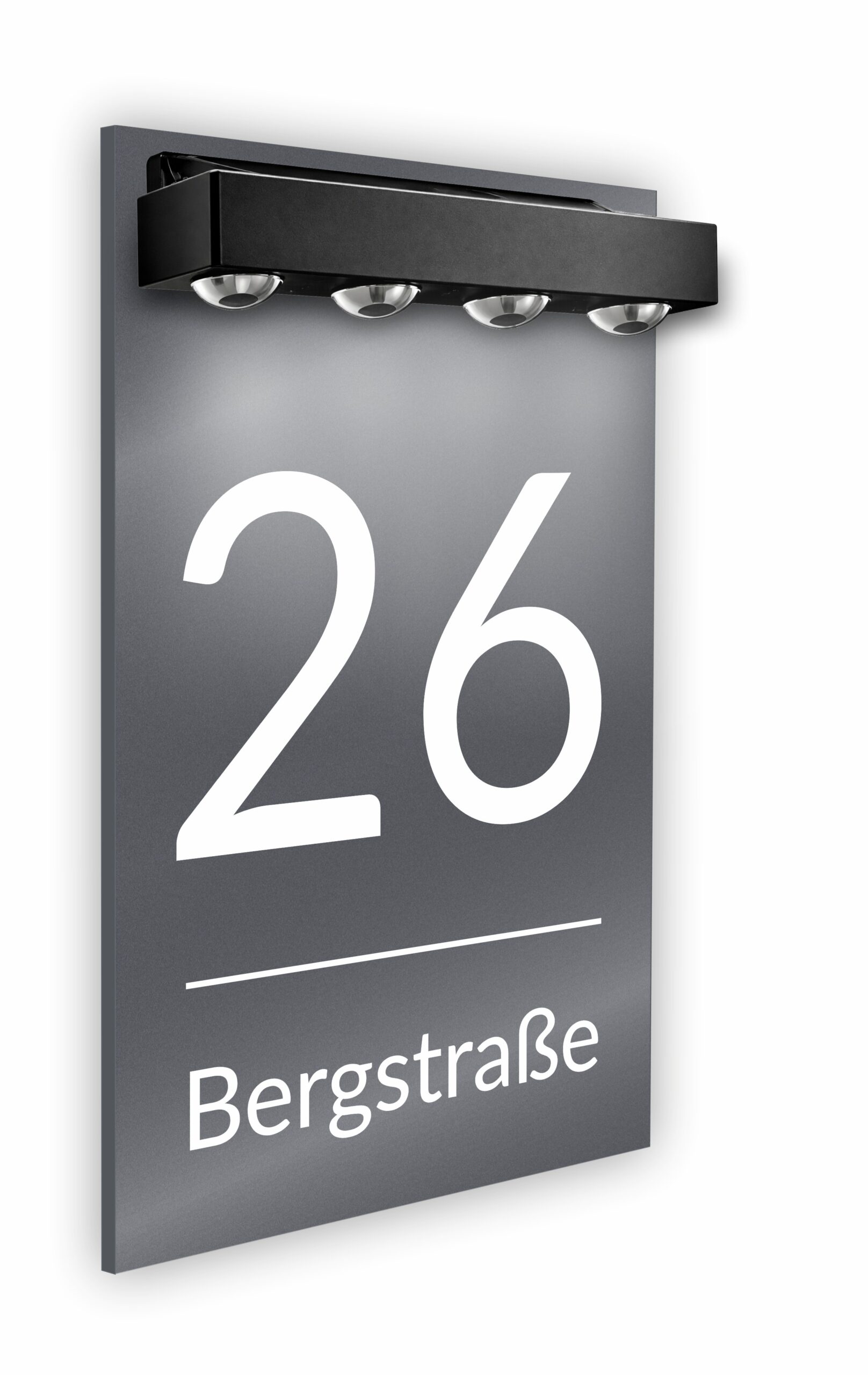 Premium Hausnummer beleuchtet mit LED Solar – RGB – inkl. 11 Farben | individuell anpassbar | Acrylglas Grau Matt | Wetterfest H1025 – Grau